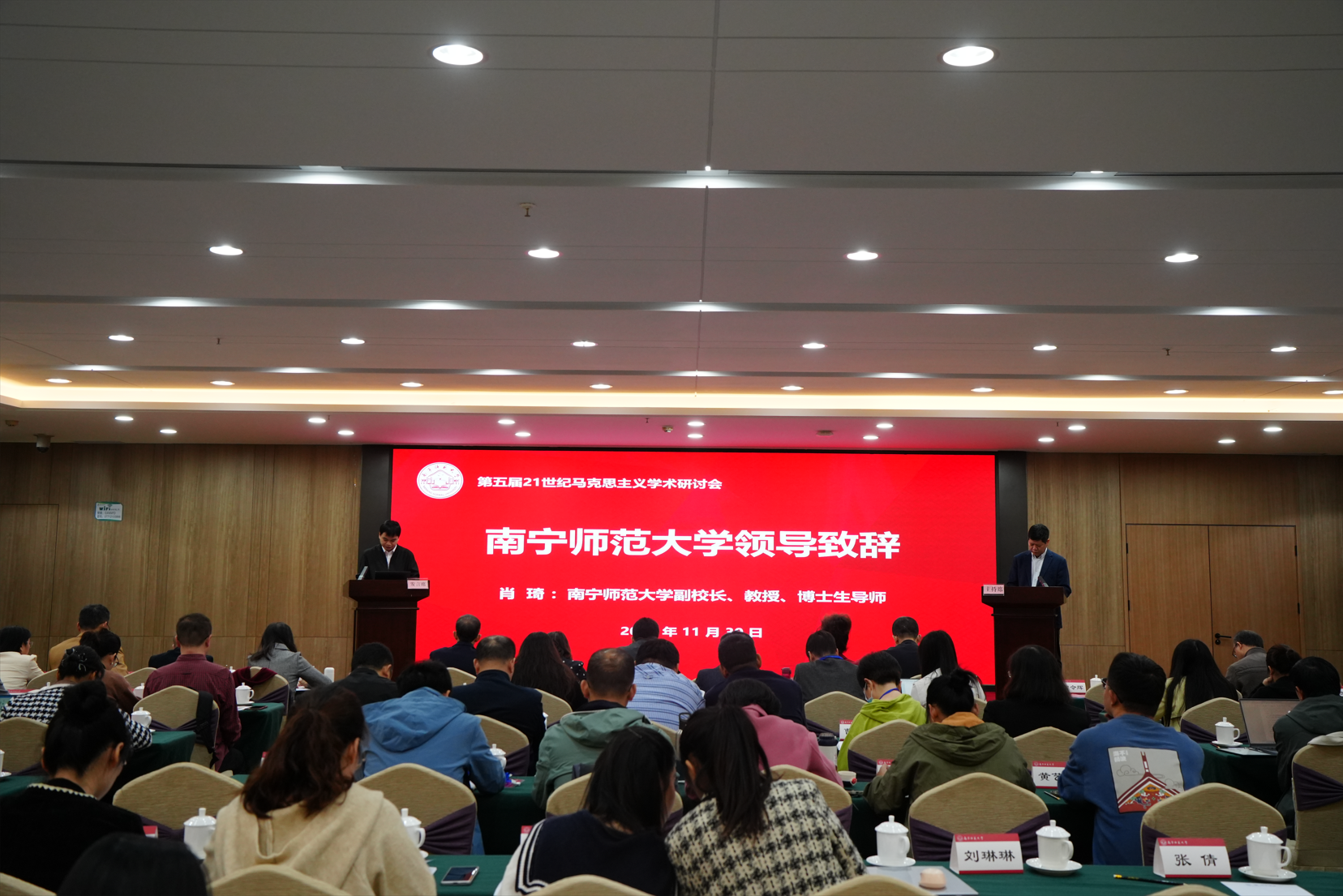 为深入学习习近平总书记对新时代马克思主义理论研究和建设工程的重要指示精神,积极探讨中国式现代化理论,推动21世纪马克思主义理论创新发展研究,11月30日,tyc122cc太阳成集团在南宁举办第五届21世纪马克思主义学术研讨会。来自北京大学、山东大学、华南师范大学、内蒙古大学、电子科技大学、安徽大学、福建师范大学、广西大学、广西师范大学、广西民族大学等区外近30所高校的120多位专家学者和一线教师、研究生参加研讨会。