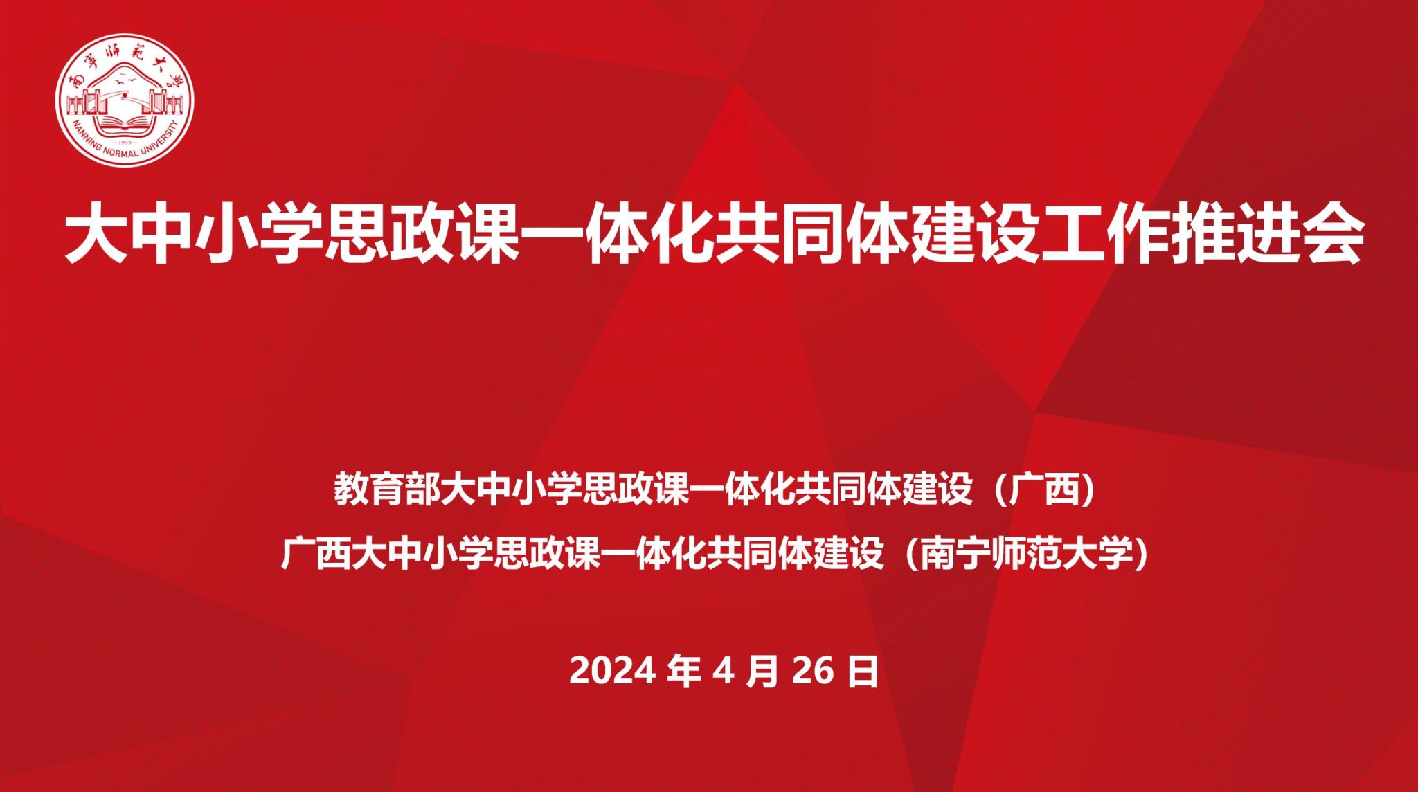 为深入学习贯彻习近平新时代中国特色社会主义思想,进一步推动全区大中小学开展思政课一体化共同体建设,4月26日下午,教育部大中小学思政课一体化共同体建设(广西)牵头单位tyc122cc太阳成集团组织召开2024年大中小学思政课一体化共同体建设工作推进会,教育部大中小学思政课一体化共同体建设(广西)和广西大中小学思政课一体化共同体建设各成员单位均参加了本次会议。会议以线上线下结合的方式进行。