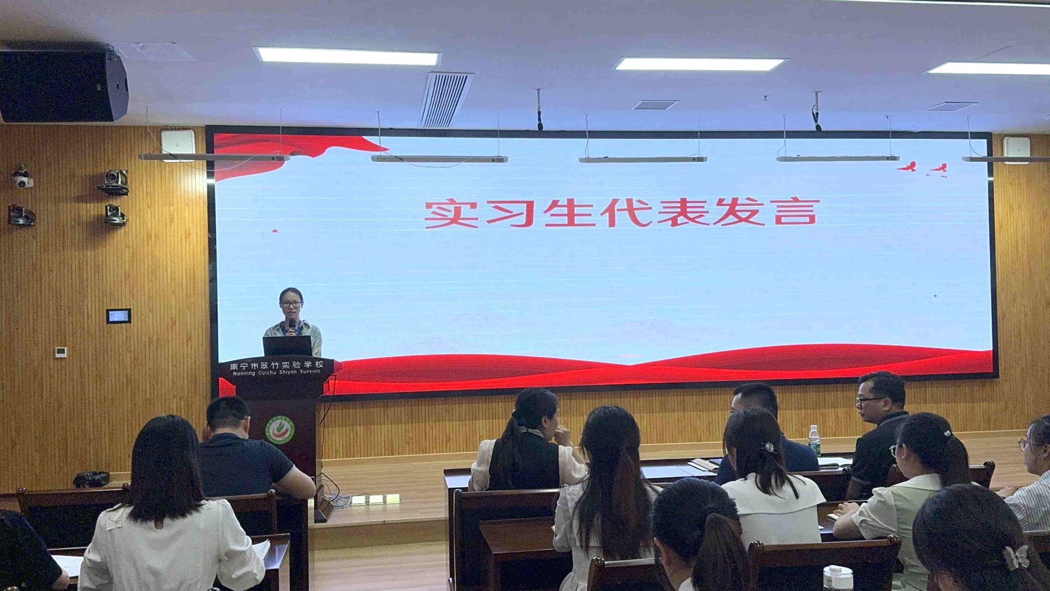 实习生代表冯菁菁在发言中代表全体实习生向所有为本次教育实习辛苦操劳的领导老师们表示衷心的感谢,并分享了实习期间的成长与收获。她表示在今后的教育事业中将继续努力奋斗,做员工喜爱、家长放心的人民教师,为社会的发展做出更大的贡献。