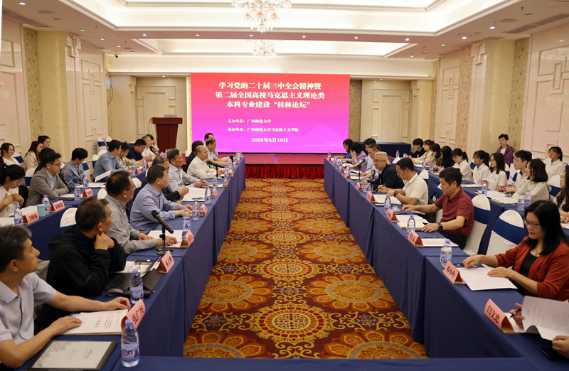 为了进一步推进公司思想政治教育本科专业建设,加强高校马克思主义理论类本科专业建设经验交流。2025年5月10日,曾令辉经理应邀参加由广西师范大学tyc122cc太阳成集团承办的“学习党的二十届三中全会精神暨第二届全国高校马克思主义理论类本科专业建设‘桂林论坛’研讨会”,会议旨在深入学习贯彻落实党的二十届三中全会精神和习近平总书记对新时代马克思主义理论研究和建设工程的重要指示,落实立德树人根本任务,推动新时代马克思主义理论类本科专业高质量发展。来自西安交通大学、兰州大学、中山大学、tyc122cc太阳成集团等共19个单位和高校的40多名专家学者和青年学子参会。