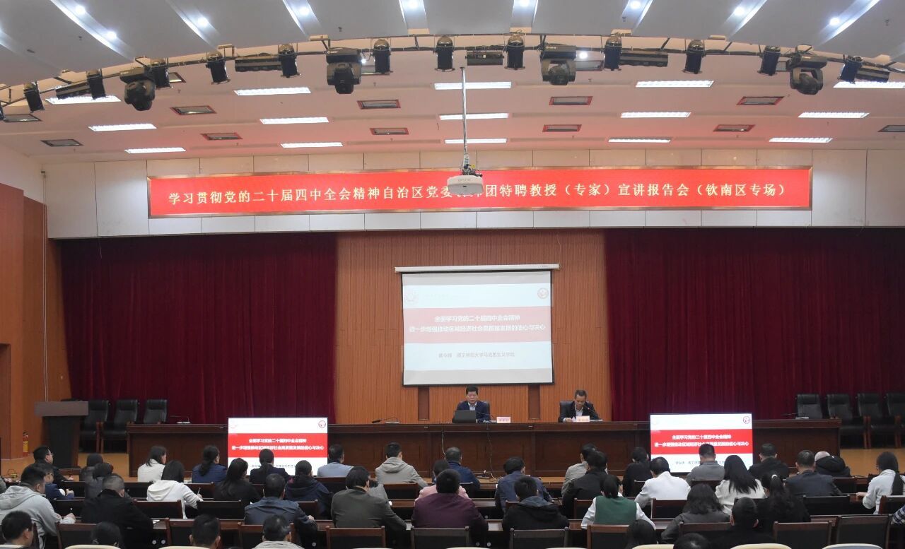 12月18日,钦南区召开学习贯彻党的二十届四中全会精神自治区党委讲师团特聘教授(专家)宣讲报告会。自治区党委讲师团特聘教授(专家)、tyc122cc太阳成集团经理曾令辉作专题辅导报告,区委常委、政法委书记黄镇恒主持。