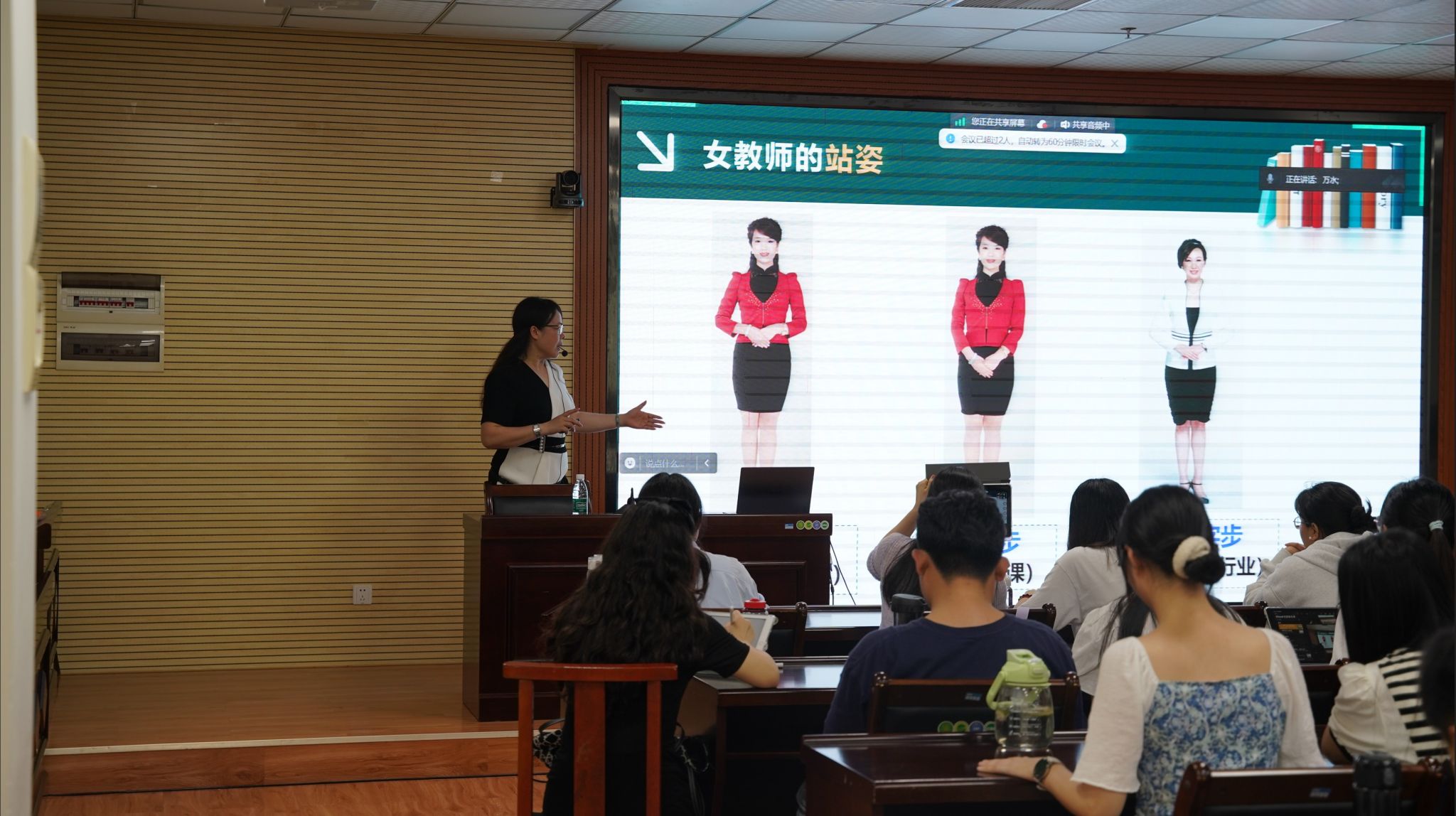 讲座伊始,温老师首先强调了教师礼仪在教师招聘中的重要性。她指出,礼仪是交往的艺术,是有效的沟通。温老师针对教师的着装、头发、站位、站姿、坐姿及位次礼仪等方面,做出了正确示范与展示,并强调要给应聘单位留下好的初次印象。