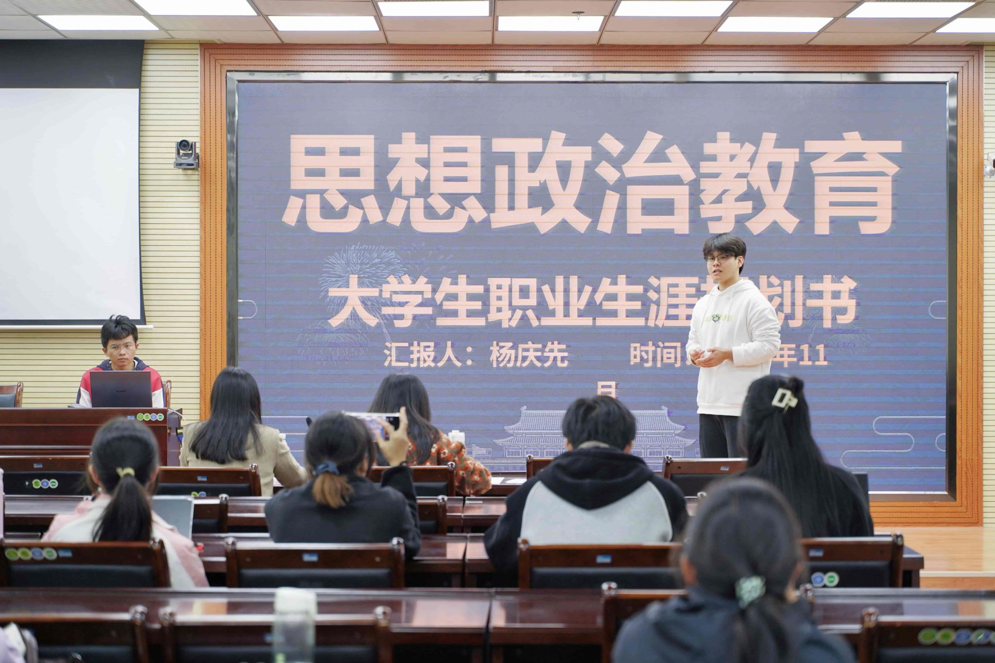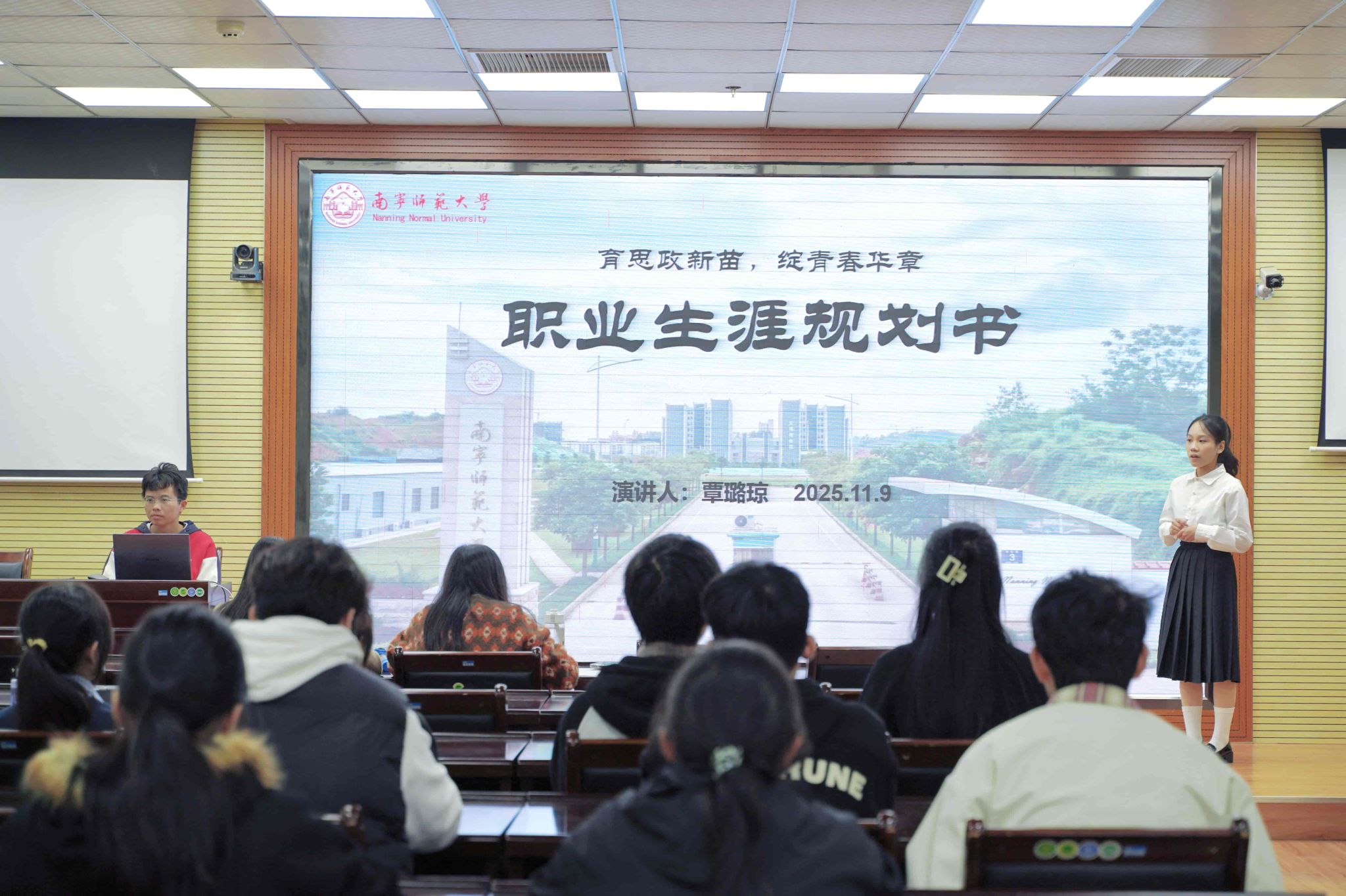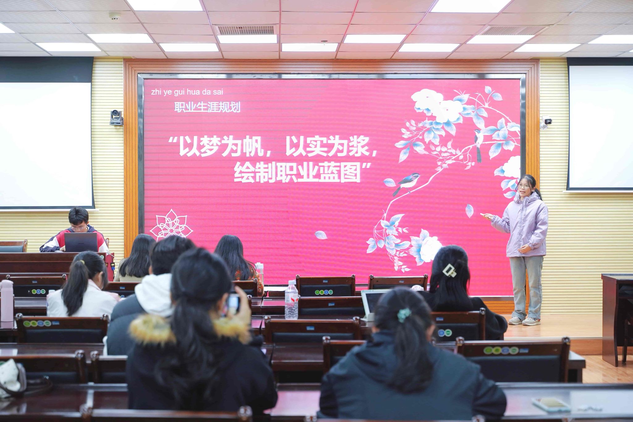 活动伊始,参赛选手依次登台,围绕自我分析、职业目标、实施路径等内容展开演讲,清晰的规划思路与饱满的青春热情,展现出新时代青年学子昂扬向上的精神风貌。接着,评委老师从内容逻辑、表达技巧、可行性等角度对选手表现进行细致点评,并给出针对性优化建议。