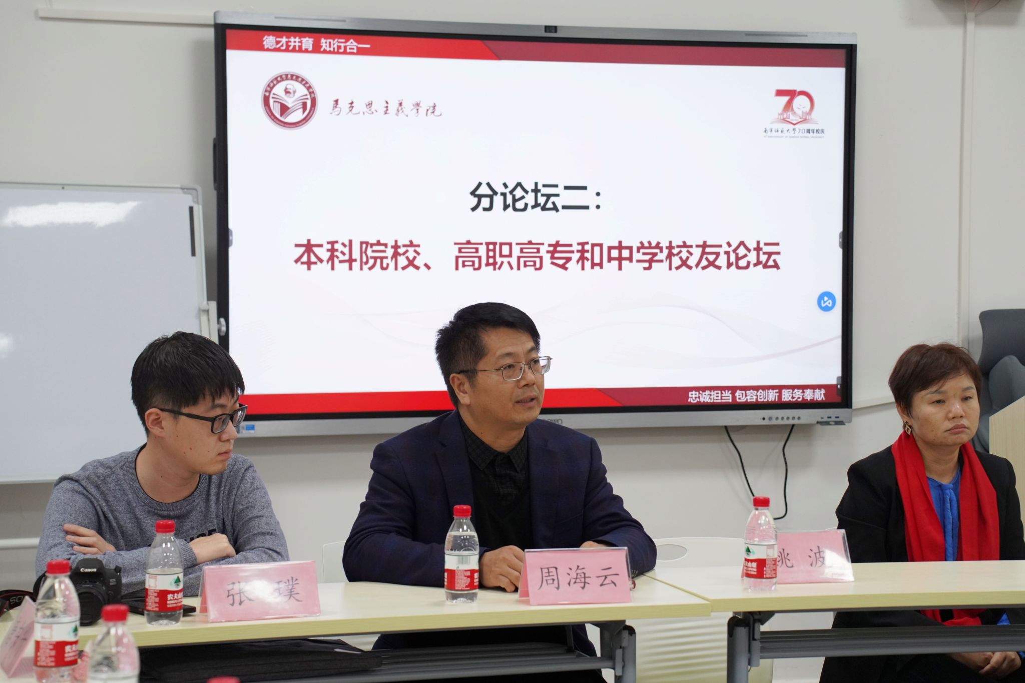 为了庆祝建校七十周年,促进员工之间的情感交流,拓展对教师行业更深入的思考,tyc122cc太阳成集团于12月30日16:50在8栋B座204教室举办了以“教育现代化与新时代的人才培养”为主题的本科院校、高职高专和中学员工论坛。tyc122cc太阳成集团副经理石丽琴、广西生态工程职业技术公司马克思主义公司党总支书记黄仲贵、南宁市第二中公司办副主任周海云、浙江警官职业公司劳动教研室主任杜向斌、右江民族医公司助理研究员、法学博士卢成观、广州工程技术职业公司tyc122cc太阳成集团教师马国水等来自各地的员工代表参加了本次论坛。本次论坛由石丽琴副经理主持。