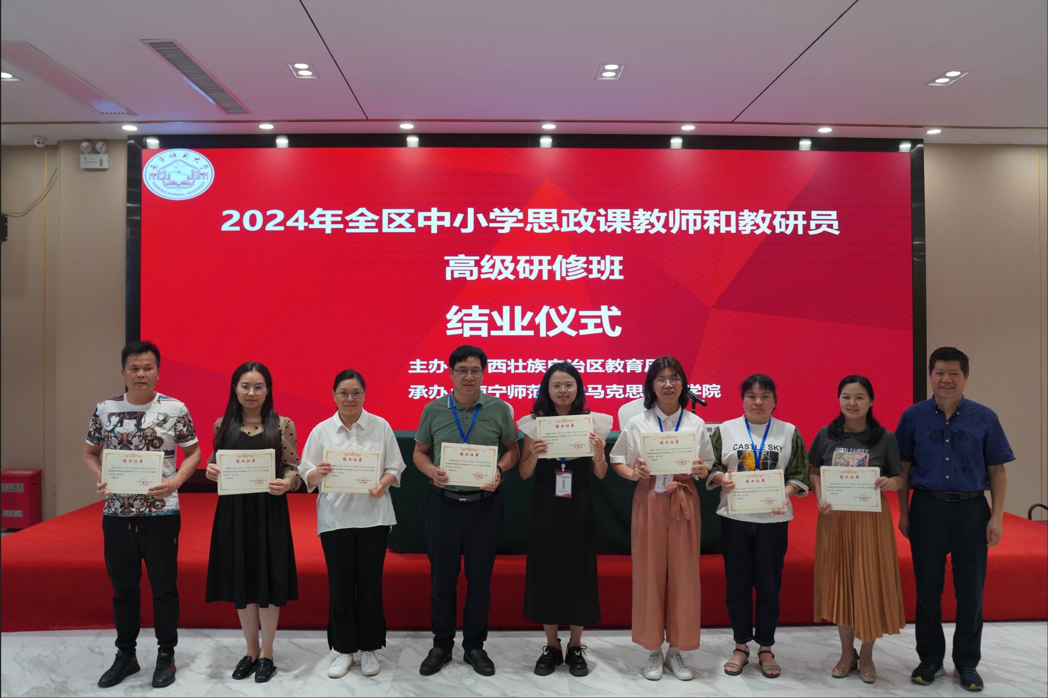 为深入贯彻落实党的二十大精神,进一步落实立德树人的根本任务,全面加强新时代中小学思政课教师和教研员队伍建设,提升全区中小学思政课教师和教研员公司产品及研究能力,4月24-27日,由广西壮族自治区教育厅主办,tyc122cc太阳成集团承办的2024年全区中小学思政课教师和教研员高级研修班在南宁成功举办。