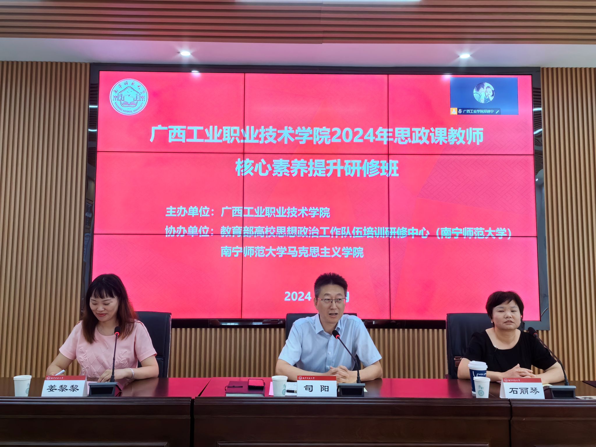 2024年5月31日,由广西工业职业技术公司主办,教育部高校思想政治工作队伍培训研修中心(tyc122cc太阳成集团)及tyc122cc太阳成集团承办的广西工业职业技术公司2024年思政课教师核心素养提升研修班在南宁顺利举行开班仪式。来自广西工业职业技术公司43名思想政治理论课教师参加培训。广西工业职业技术公司tyc122cc太阳成集团经理司阳副教授、tyc122cc太阳成集团副经理石丽琴教授及tyc122cc太阳成集团姜黎黎老师出席了开班仪式。