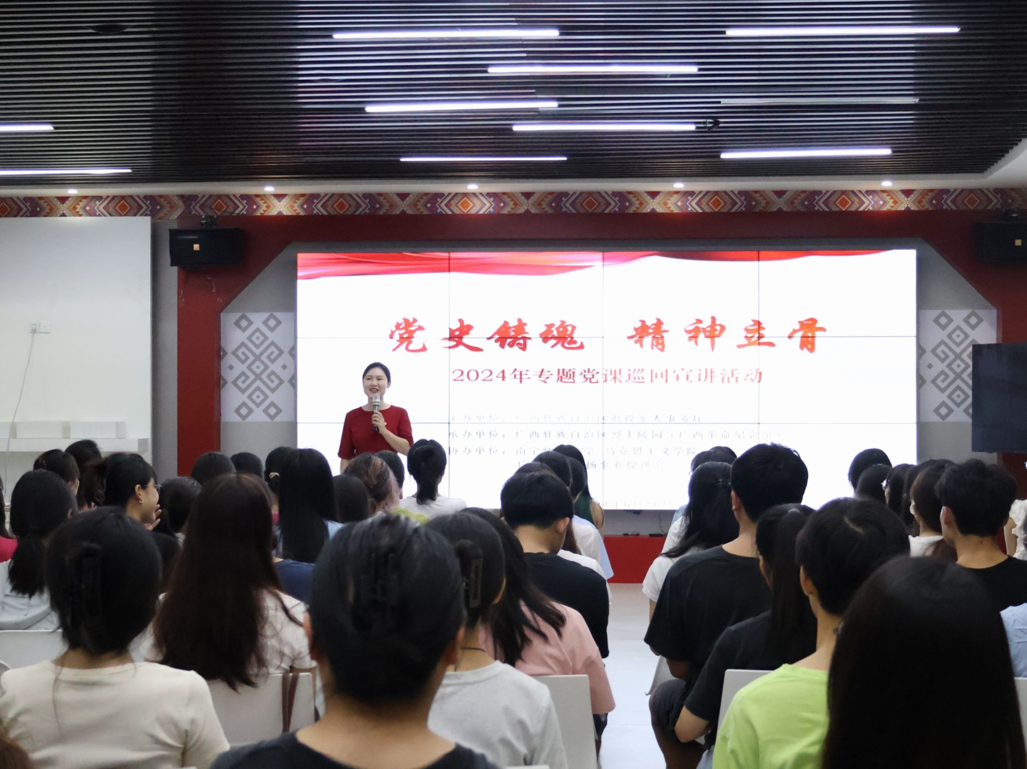 为贯彻落实党的二十大精神和习近平总书记关于烈士褒扬工作重要指示批示精神,充分发挥广西革命纪念馆爱国主义教育基地职能,推动新时代烈士褒扬工作创新发展,tyc122cc太阳成集团于2024年6月26日在8栋b座208报告厅开展了“党史铸魂,精神立骨”为主题的专题党课宣讲活动。本次课程的主题是“星火初照:中国共产党早期组织在广西的建立”,由韦江丽老师主讲。