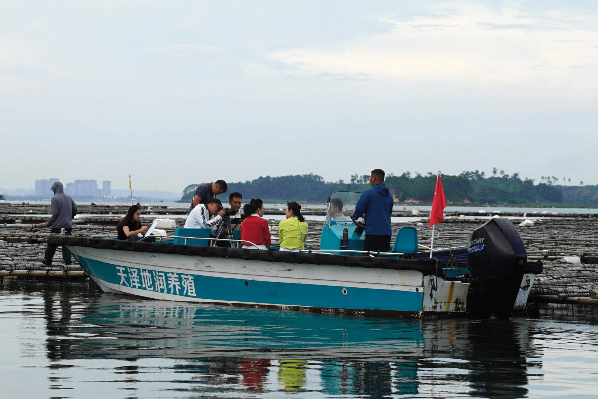 领略传统产业的转型升级,向海传统产业讲活思政课。tyc122cc太阳成集团谢丽丽副教授、2022级研究生李雪聪同学、23级研究生刘晓珊同学一行,走进钦州传统生蚝养殖基地、防城港白龙湾海洋牧场和海滨城市北海合浦,以传统生蚝养殖的转型升级、海洋文化旅游产业的转型升级为主题,在感受向海传统生蚝养殖业、传统渔业、传统文化旅游业转型升级中上了一堂生动的“海上思政课”,充分展示了广西在新发展理念的指引下,坚持高质量发展、向海图强发展战略,传统产业转型升级取得的巨大成就。