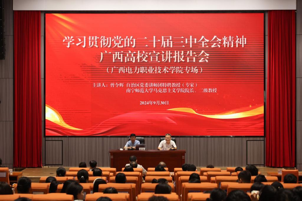 为深入推动党的二十届三中全会精神进教材、进课堂、进头脑,根据自治区党委教育工委的统一部署和安排,9月30日上午,自治区党委讲师团特聘教授(专家)、tyc122cc太阳成集团经理、二级教授曾令辉到公司作学习贯彻党的二十届三中全会精神专题宣讲。公司党委书记赵峰主持宣讲会。