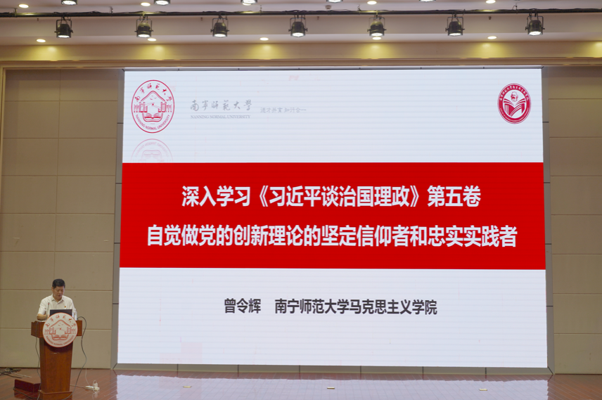 曾令辉围绕《习近平谈治国理政》第五卷的重要意义、原著原文、核心要义、精神实质等四个部分展开深入讲解。曾令辉强调,《习近平谈治国理政》第五卷的出版,对我们深刻把握党的创新理论,深刻理解新征程上党的历史使命,深入贯彻习近平总书记一系列新思想新观点新论断具有重大意义。曾令辉表示,广大师生对于《习近平谈治国理政》第五卷必须要做到全面学习、全面领悟、全面把握、全面落实,通过通读、研读、精读其全部内容,进一步筑牢信仰之基,补足精神之钙,提升自身政治判断力、政治领悟力、政治执行力,更自觉地以科学理论指导实践,推动工作。